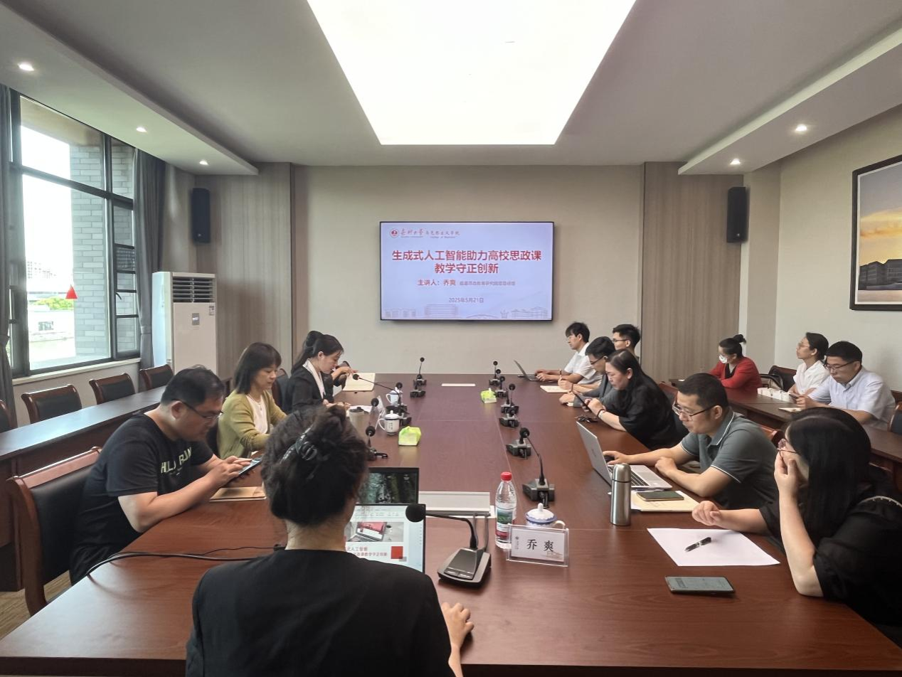 于5月21日下午举办了“AI赋能思政课”教学活动。本次教研活动邀请了超星思政教育研究院乔爽经理作题为《生成式人工智能助力高校思政课教学守正创新》的讲座。学院党总支书记宋之霞、副院长罗理章,以及学院部分教师参加了讲座。讲座由副院长张笑笑主持。
