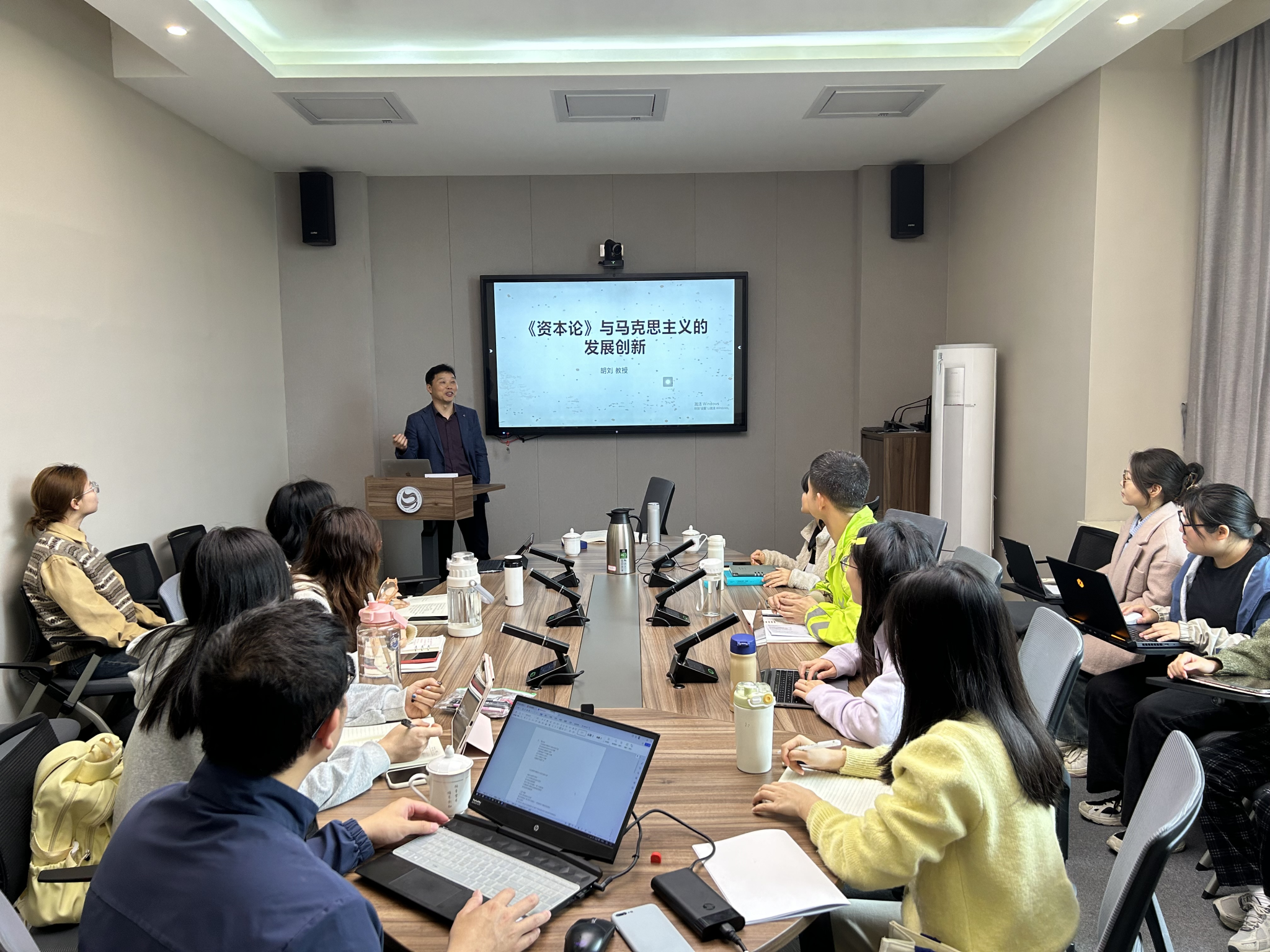 2024年4月12日至13日,西南大学色情动漫 胡刘教授来色情动漫 为研究生做题为《<资本论>与马克思主义的发展创新》系列讲座。学院2023级部分硕士研究生聆听讲座,马克思主义基本原理方向负责人康文龙教授主持讲座。