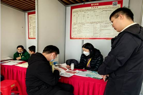 教研室主任在武汉大学招聘会宣传学校招聘政策并收取毕业生简历