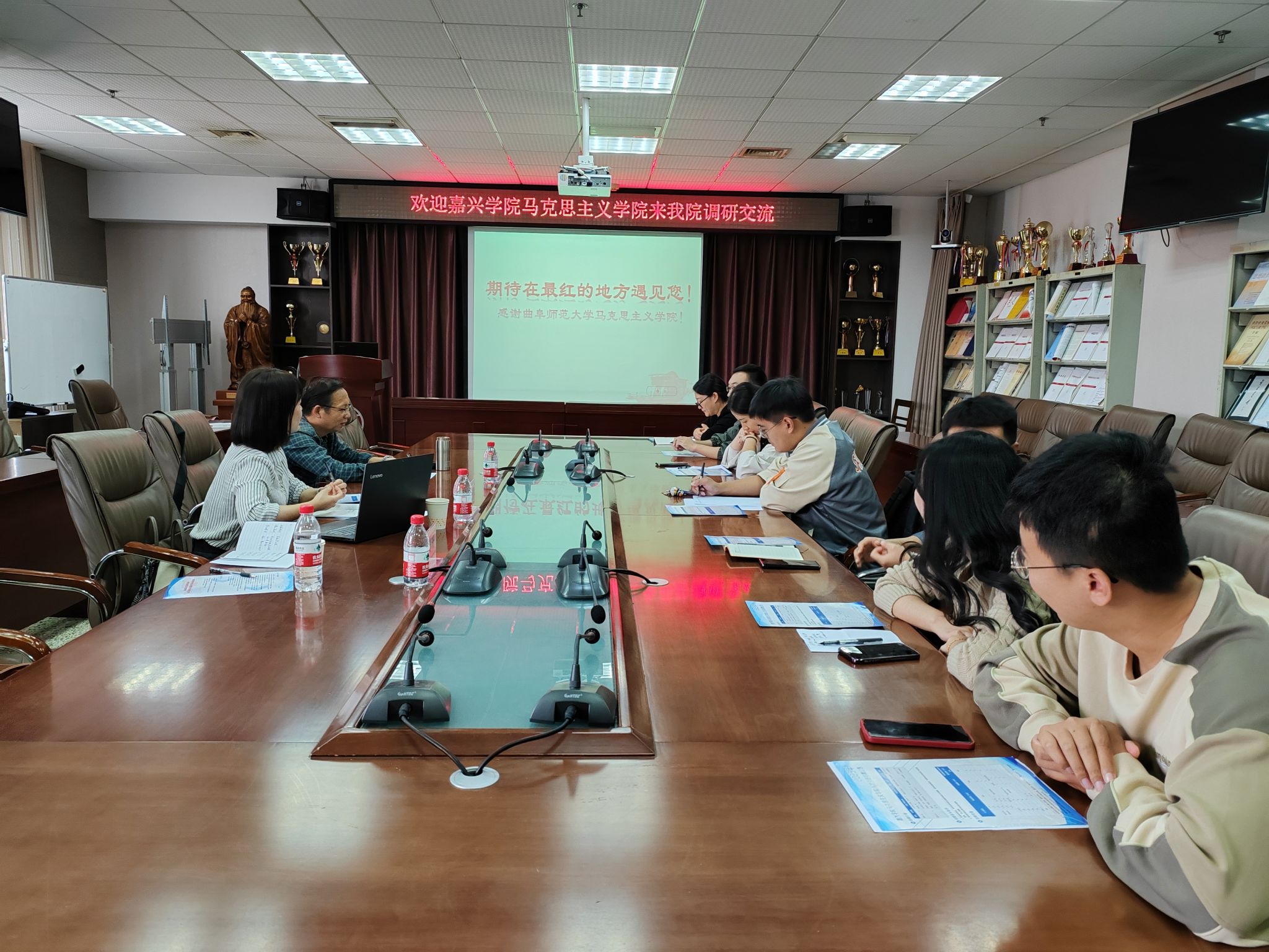 20231011日,由宋之霞书记带队,马克思主义中国化方向负责人赵金飞和办公室余珊珊老师参加,到曲阜师范大学开展博士招聘宣讲,并就马克思主义理论学科建设、研究生培养、党建工作等进行考察交流。