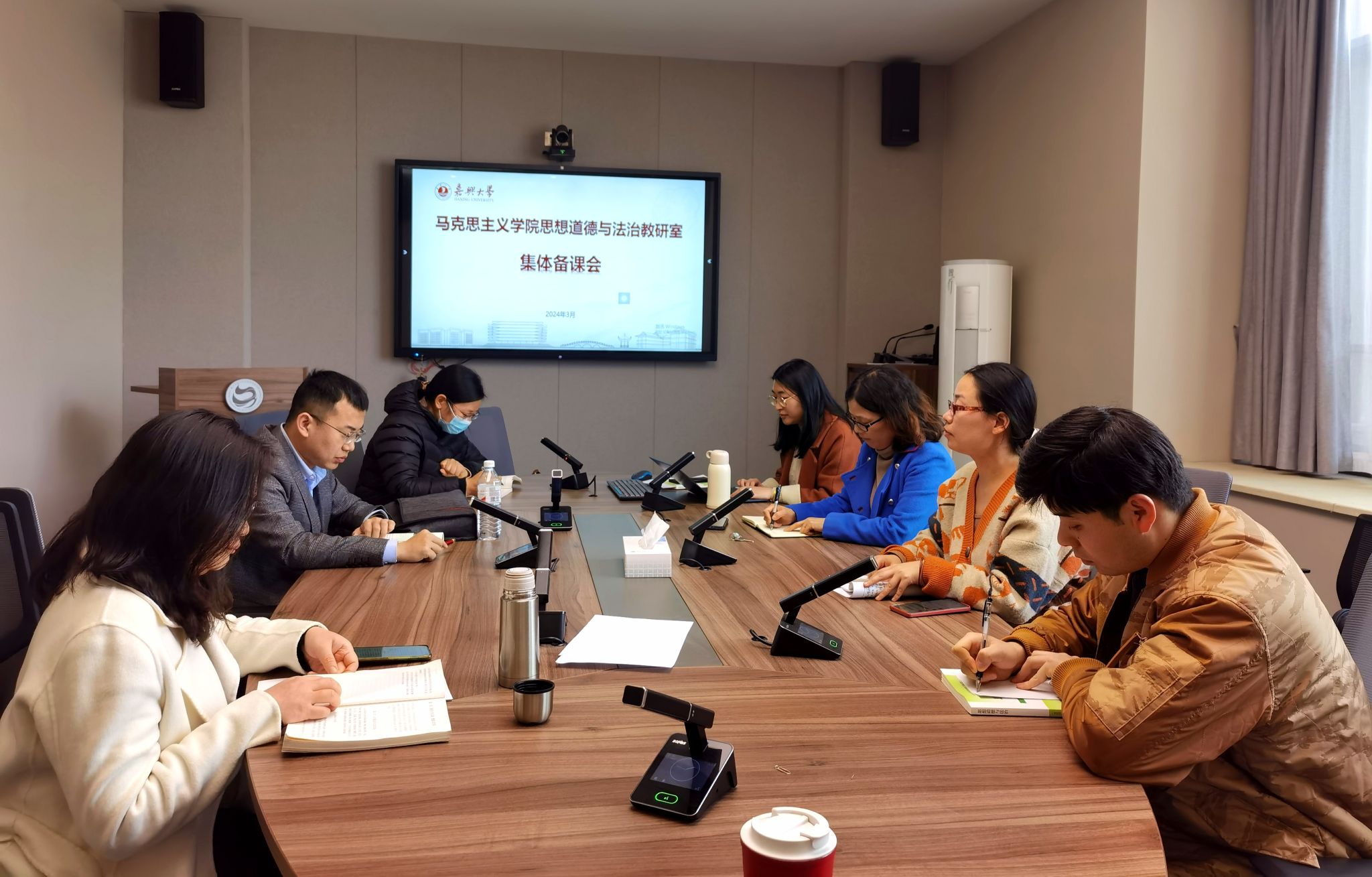 《思想道德与法治》集体备课会有两项议程:一是研讨 “两会”精神如何融入课堂教学;二是新教师说课与磨课,集体听课与评议。