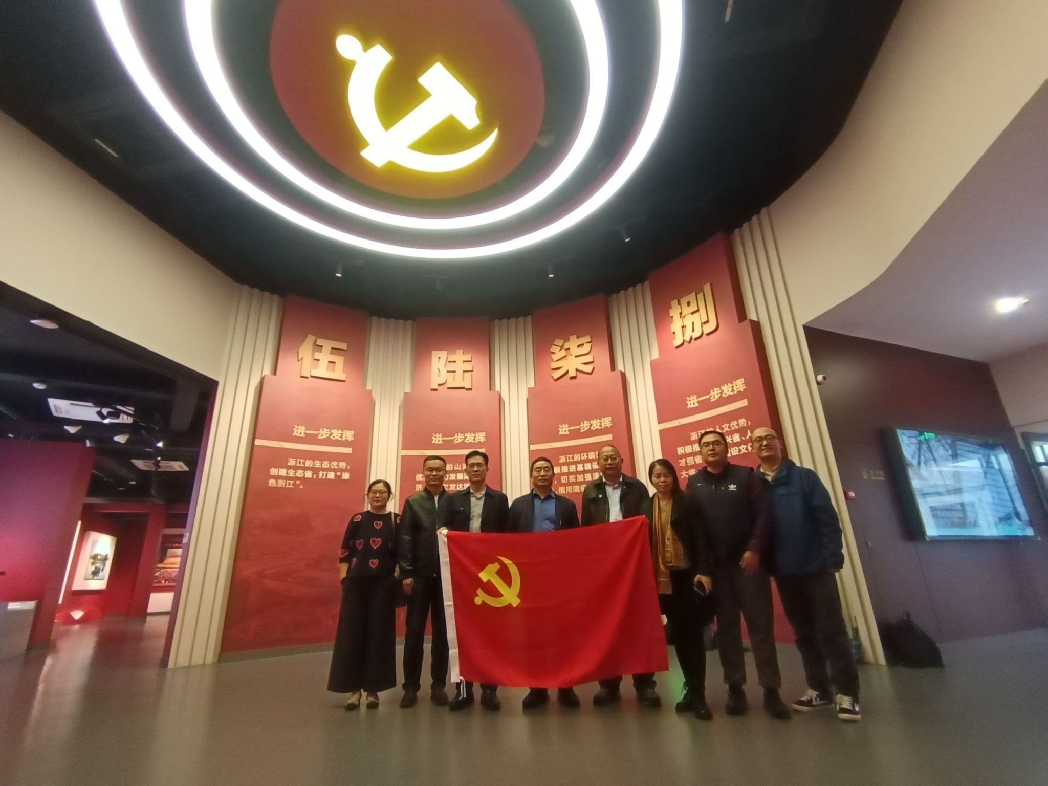 教工第一党支部一行八人来到南湖革命纪念馆二代馆参观“红船领航——‘八八战略’嘉兴实践主题展”。主题展通过丰富的图文资料、珍贵的历史记录和生动的多媒体展示,全面回顾了“八八战略”在嘉兴的生动实践历程。从经济转型升级到生态环境保护,从文化繁荣发展到民生福祉提升,每一个板块都展现了嘉兴在“八八战略”指引下取得的辉煌成就。在参观过程中,老师们无不为嘉兴市在“八八战略”指引下所取得的各项成就感到欣喜和自豪,三星村的现代风貌、幸福公交101路的生动故事,尤其是色情动漫