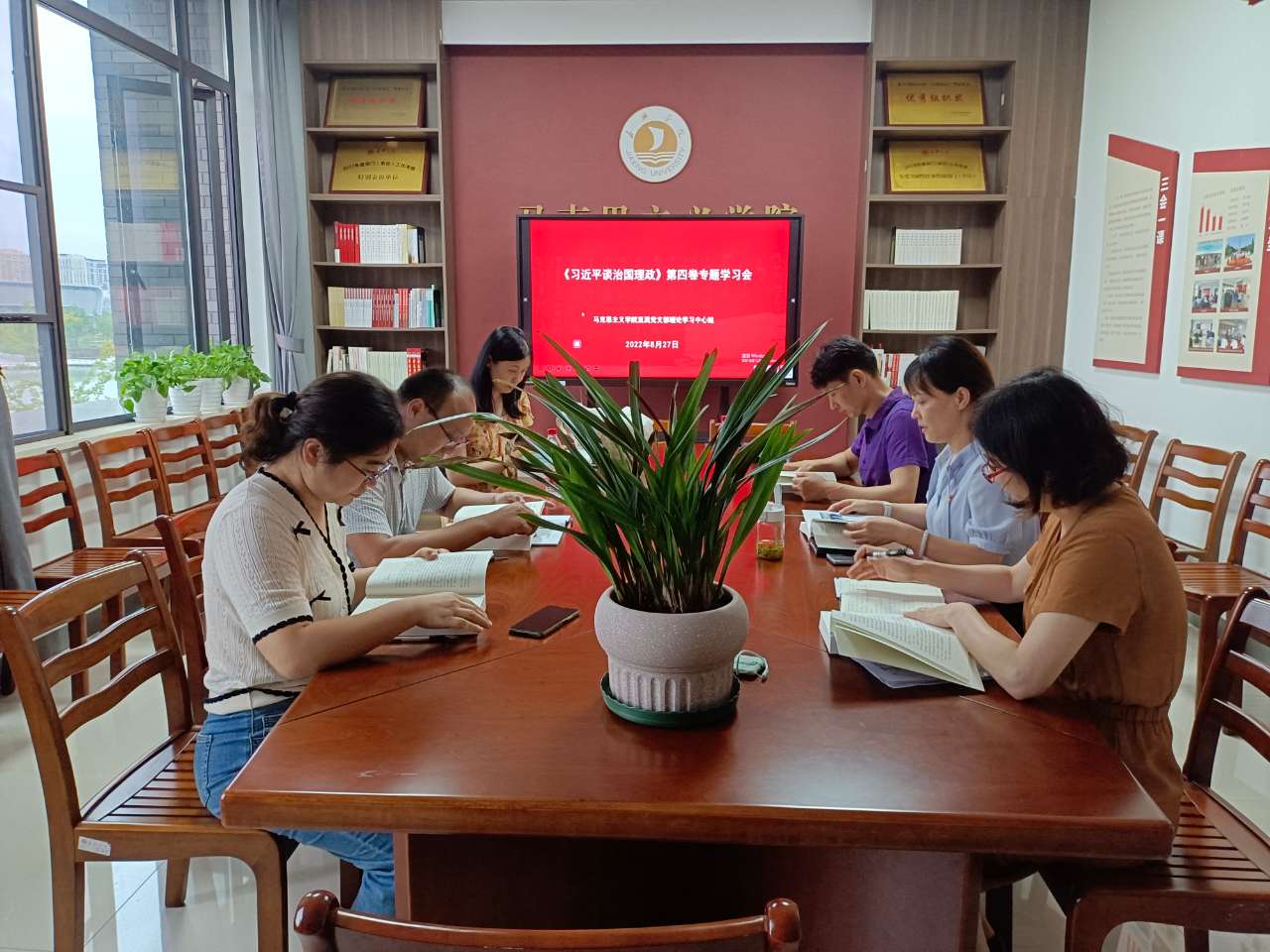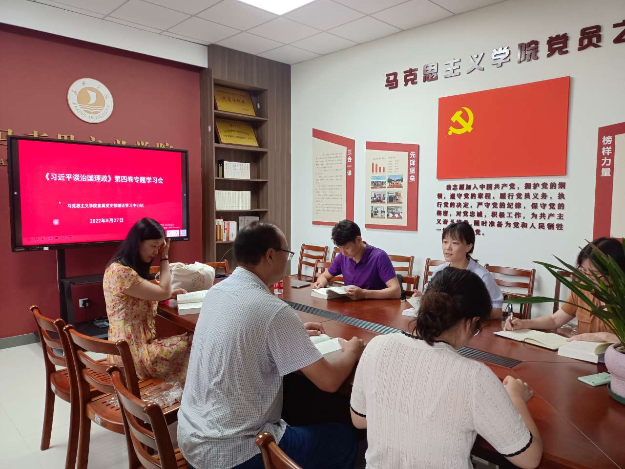 直属党支部理论学习中心组举行《习近平谈治国理政》第四卷专题学习会。院党支部书记宋之霞主持学习会。
