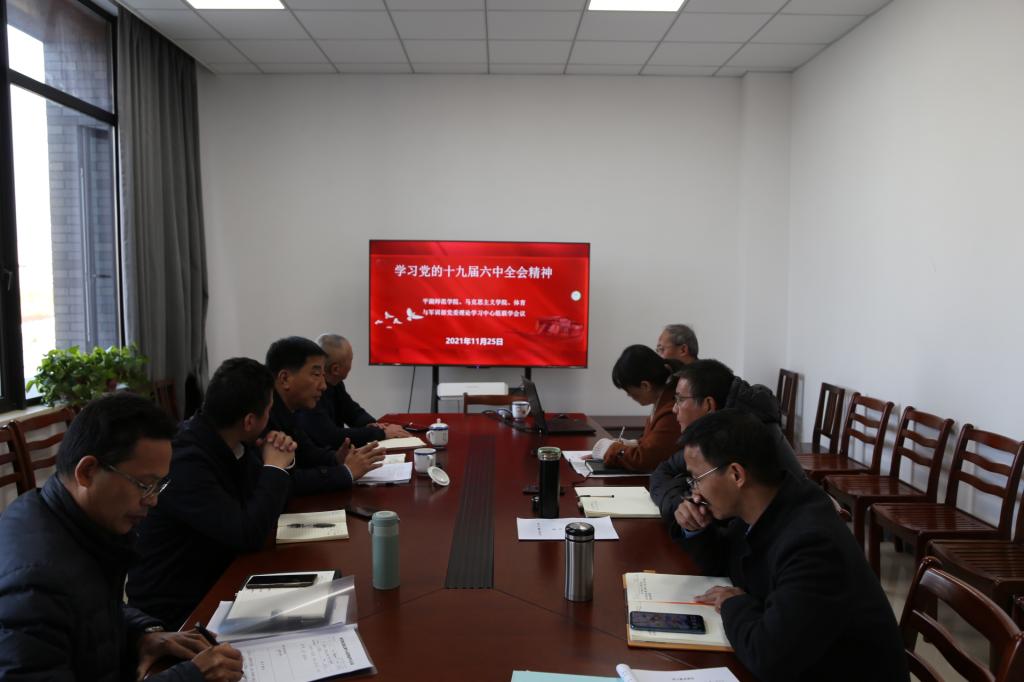 1125日下午,色情动漫 与平湖师范学院(应用技术学院)、体育与军训部三个部门党委理论学习中心组召开联学会,专题学习党的十九届六中全会精神原校党委副书记、校红船精神研究中心主任、色情动漫 院长吕延勤出席了联学会,平湖师范学院(应用技术学院)党委书记朱素斌主持会议,三个部门党政班子成员参加联学。