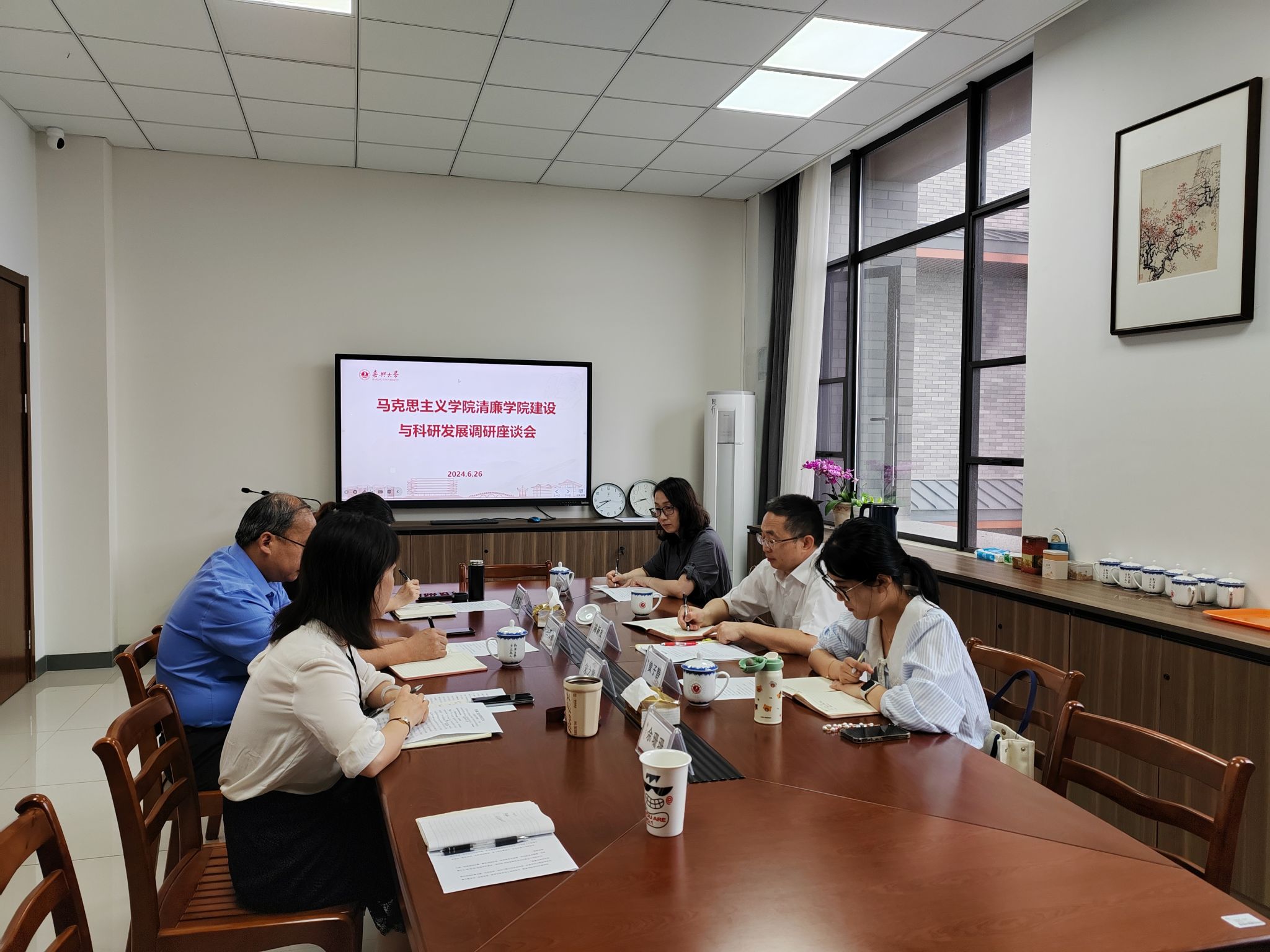 陈新友充分肯定学院在推动清廉建设深度融入学院治理和科研工作高质量发展中所取得的工作成效,认为学院在学校地位突出,学科建设成果丰硕,发展思路清晰,办学特色鲜明。他强调,要聚焦立德树人根本任务,不断提升思政课教育成效;要聚焦学科特色打造廉洁文化品牌,继续深化清廉支部、清廉团队的建设;要聚焦贯通融合,发挥“清廉二级学院”引领作用,将廉政建设与学院各项中心工作相结合,引领学院事业有组织高质量发展。