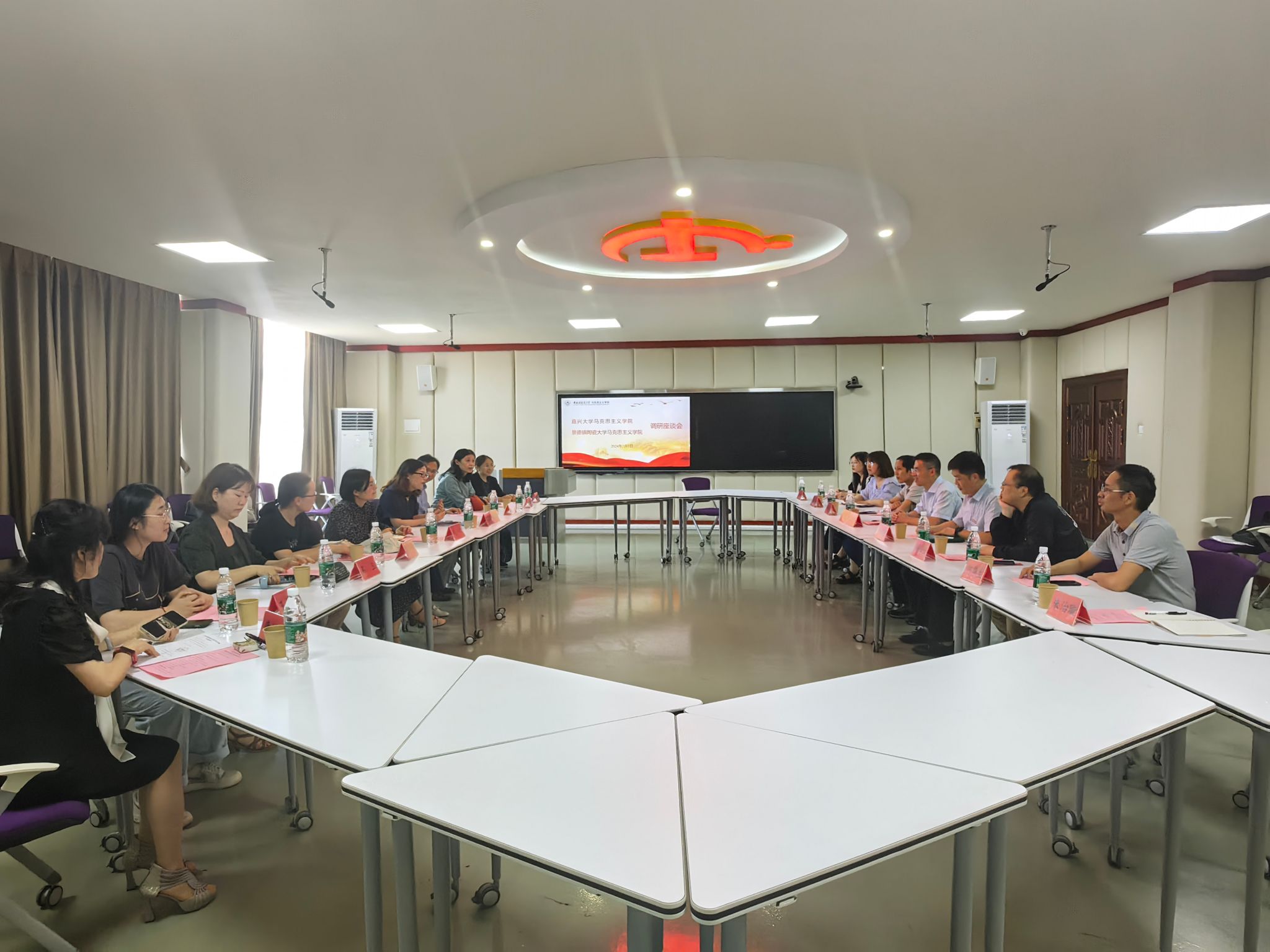 思想政治教育方向教师到来表示热烈欢迎,对马院的建设情况进行了介绍,副院长李松杰教授就学科建设做了介绍。然后双方就学科建设、思政实践课、大中小学思政教育一体化等重点方面展开了充分的交流和互动,并参观了景德镇陶瓷大学的元青花馆等。